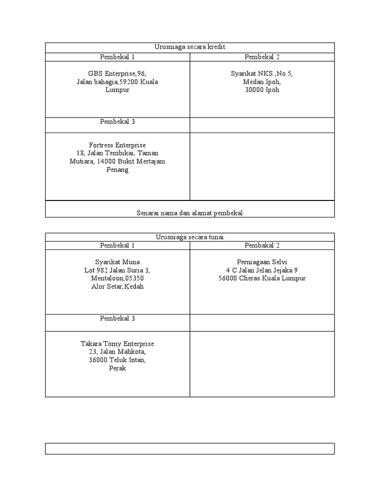 Senarai Nama Dan Alamat Pembekal Folio Form 4 2010 Prinsip Perkaunan Pdf